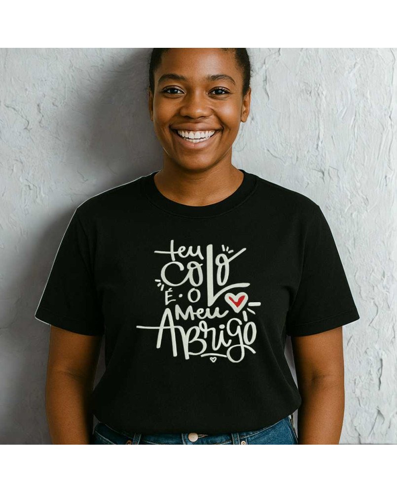Apresentamos nossa camisa feminina católica bordada com a frase: Teu Colo é o Meu Abrigo, perfeita para demonstrar o seu carinho e amor com muita espiritualidade e estilo!