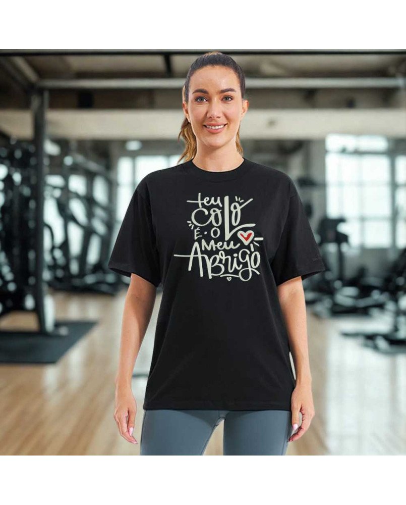 Camisa Malha Tshirt Católica Bordada Teu Colo É Meu Abrigo