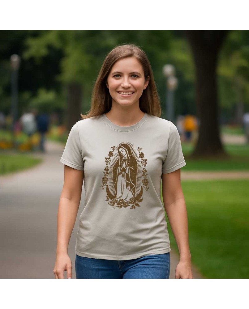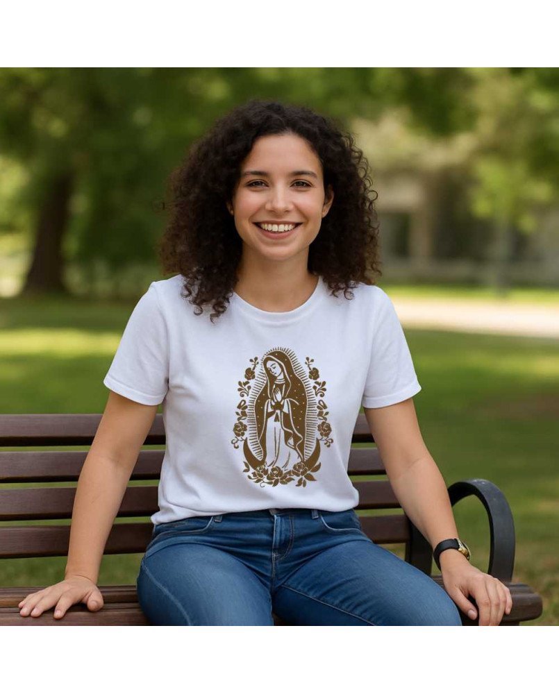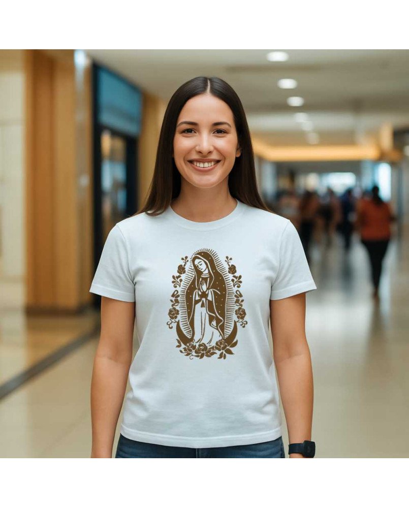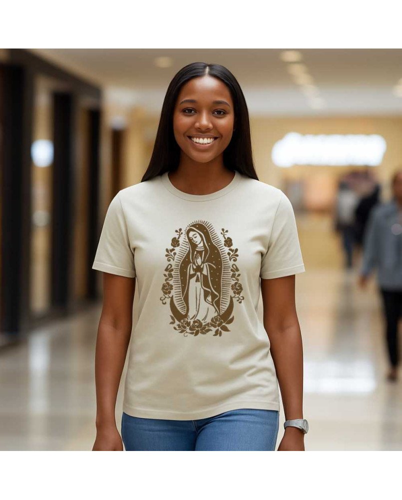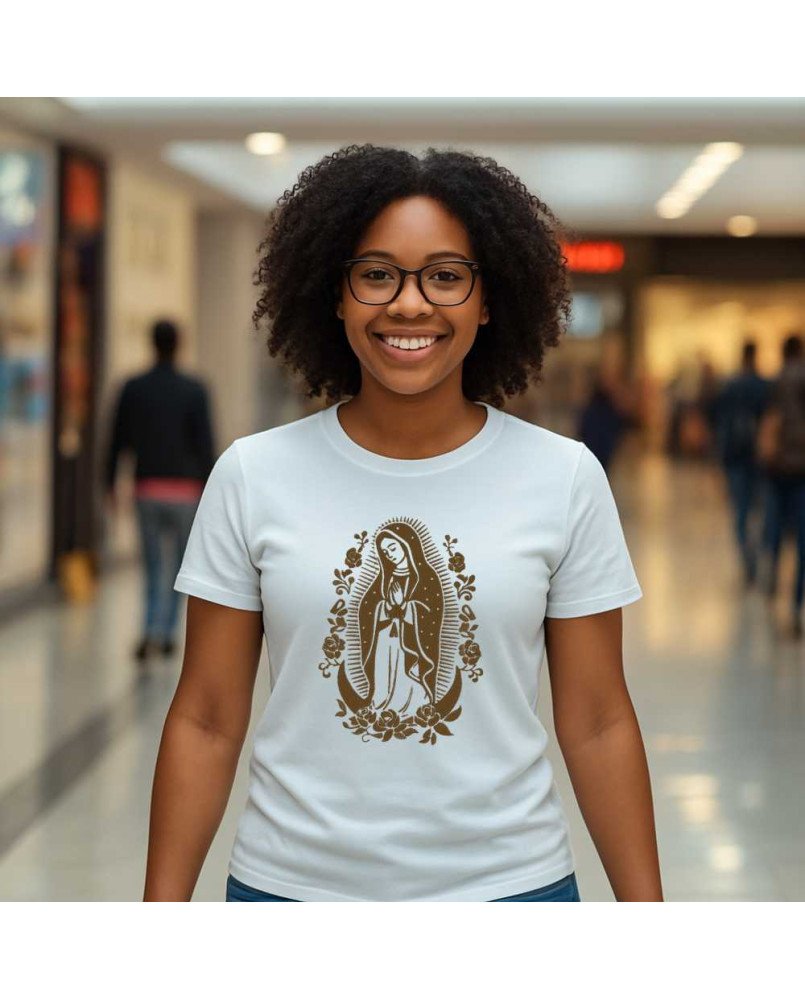 Camisa Feminina da Moda Católica Bordada com a imagem de "Nossa Senhora de Guadalupe" – Roupa Religiosa, Fé e Estilo