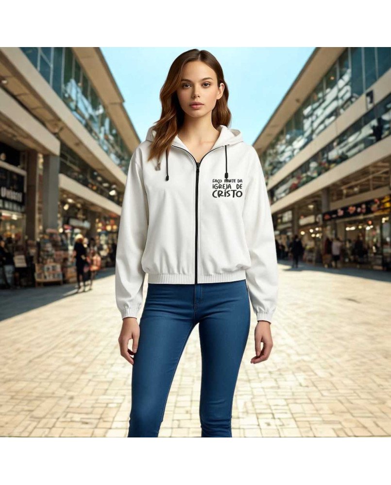 Ideal para dias frios, passeios ao ar livre ou momentos de oração e retiro, ele é unissex, versátil e cheio de significado. O modelo combina com jeans, leggings ou até mesmo sobreposições em looks mais casuais.