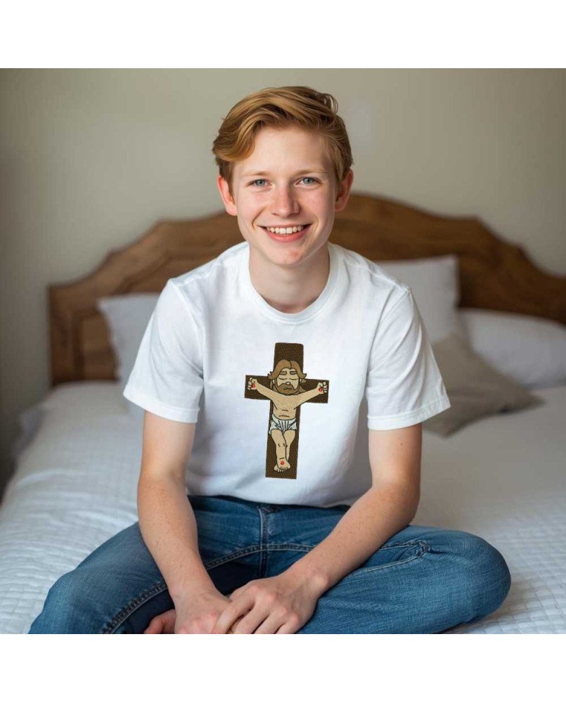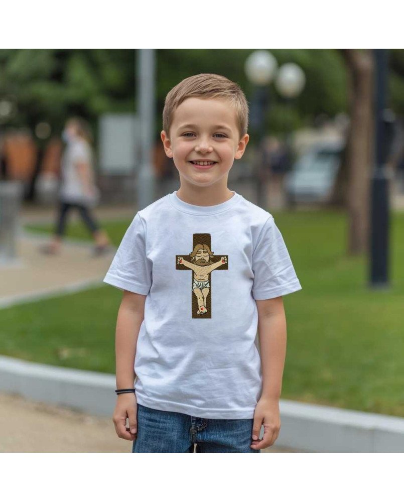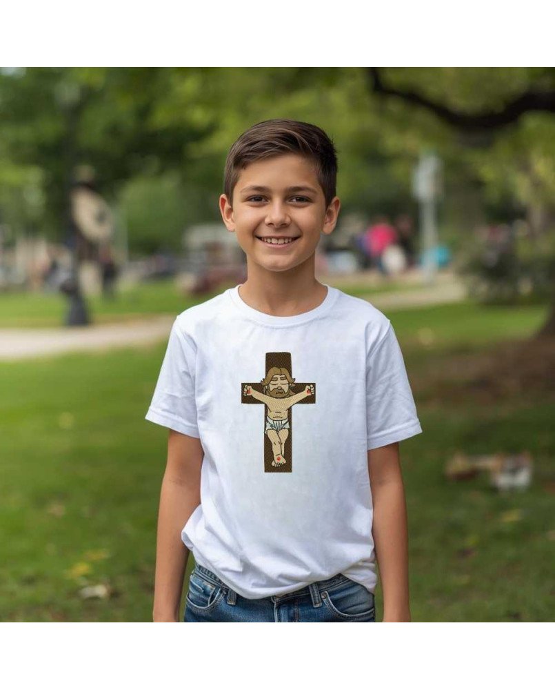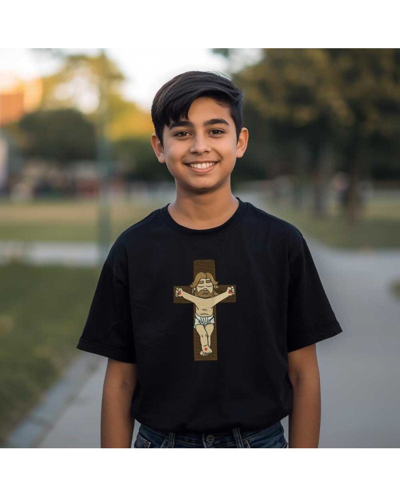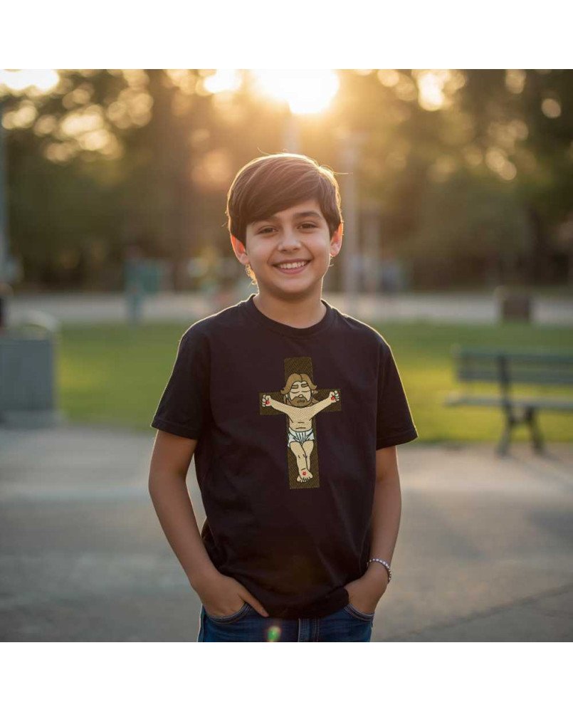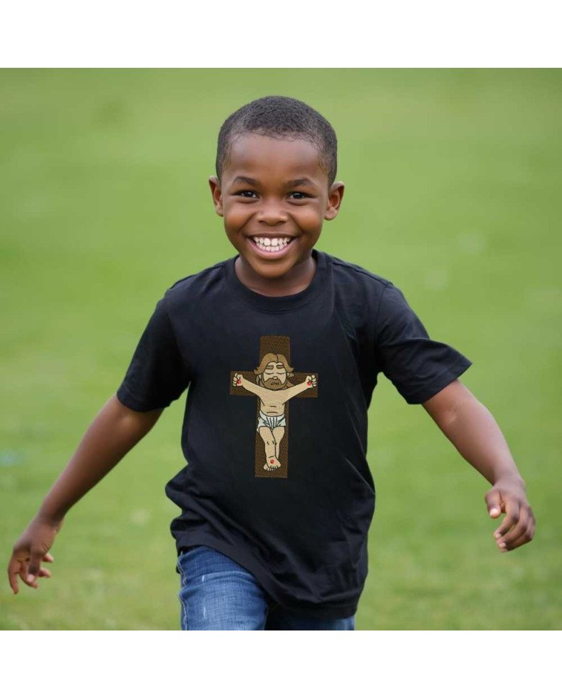Garanta agora a Camiseta Infantil Cristo Crucificado e vista sua criança com fé e propósito!