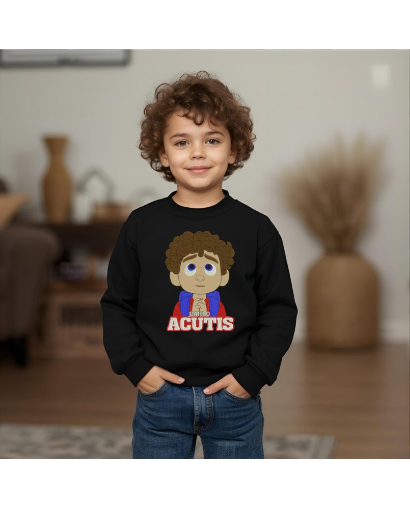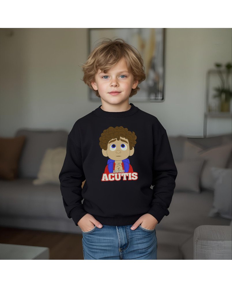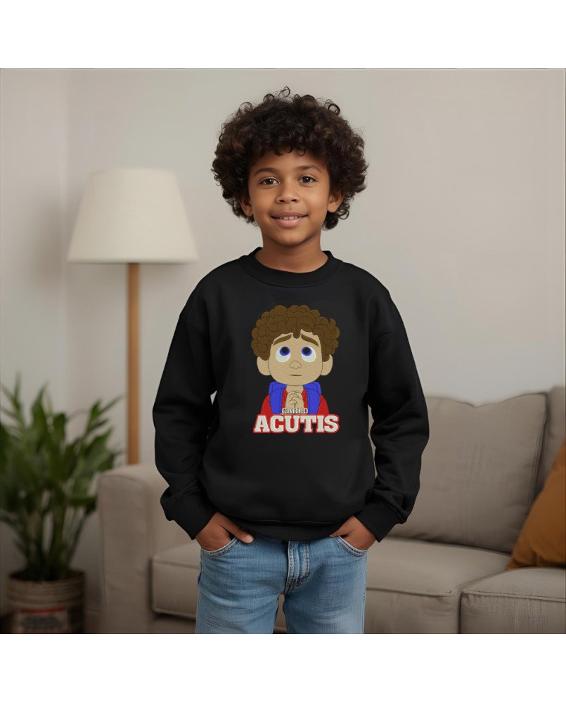 Moletom infantil católico com bordado exclusivo de Santo Carlo Acutis