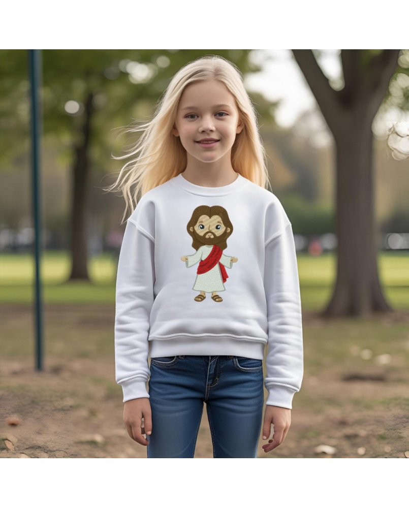 Adquira agora o Moletom Infantil Bordado com Jesus Cristo e proporcione ao seu filho(a) uma peça que une fé, conforto e estilo com qualidade incomparável!