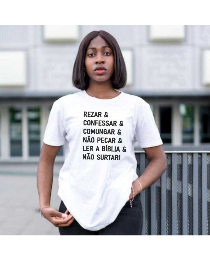 Camisa Malha Bordada Feminina Católica Rezar e Não Surtar