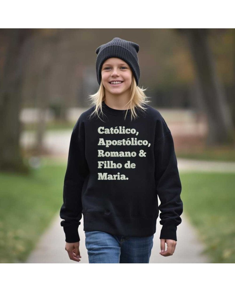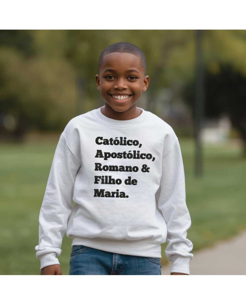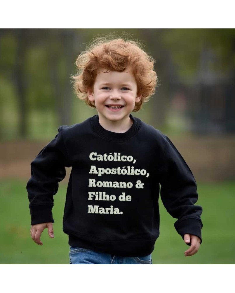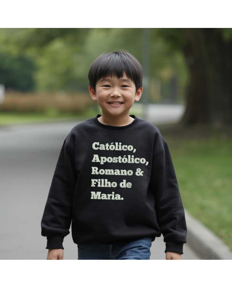 Vista a fé com estilo e conforto! Nosso moletom infantil católico é perfeito para pequenos evangelizadores que desejam expressar sua devoção e identidade cristã. Com a frase bordada "Católico, Apostólico, Romano e Filho de Maria", ele combina beleza, conforto e significado, tornando-se ideal para crianças que vivem e compartilham a fé católica com alegria.